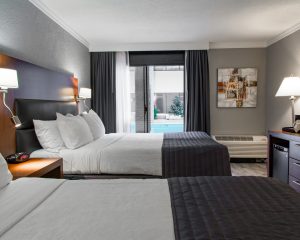 Discover the Best Western Hôtel Universel Drummondville in pictures: modern rooms, indoor pool under a glass roof, gym, bright meeting spaces, and hotel facade. Ideally located between Montreal and Quebec City, our hotel offers comfortable stays for business and leisure.